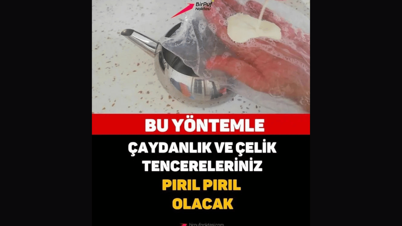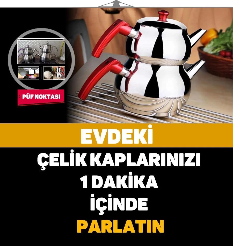 Çaydanlık ve Çelik Tencereleriniz Pırıl Pırıl Olacak! Hiç bir kimyasal zehir kullanmadan çaydanlığınızı ve tencerelerinizi evde parlatın. Evde en çok kullandığımız çaydanlıklarımız içerisinde uzun süre bekletilen çay ve kireçli su sebebiyle maalesef iç kısımlarında sararma ve kireçlenme yaparlar. Aynı şekilde dış kısımları da su da kireç nedeniyle parlaklığını yitirirler.