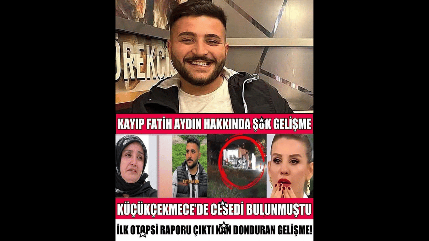 Fatih Aydın Olayında Son Durum Nedir? Otopsi raporu çıktı mı? Öldü mü, yaşıyor mu? İstanbul’un Küçükçekmece ilçesinde aylar önce kaybolan 21 yaşındaki Fatih Aydın’la ilgili beklenen gelişme yaşandı. Esra Erol’un programında haftalardır işlenen kayıp dosyası, bulunan bir erkek cesediyle birlikte yeni bir dönemece girdi. Ailesinin televizyon ekranlarında yardım arayışıyla gündeme gelen olayda, Adli Tıp Kurumu’ndan gelen son raporla birlikte taşlar yerinden oynamaya başladı. Haberin devamı sonraki sayfada…Okumak için diğer sayfaya geçiniz!