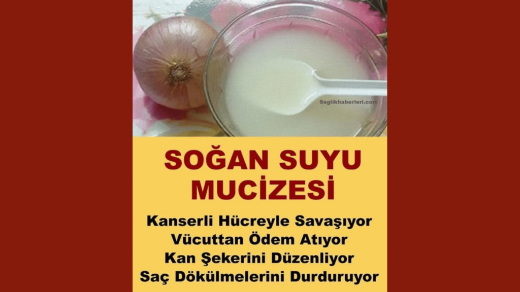 Birçok sağlık sorununda soğan suyunun harika faydaları.. Kanserle mücadelede soğan suyu mucizesi! Yemeklere lezzet veren soğan, suyuyla da vücudumuz, cildimiz ve saçlarımız için tam bir şifa kaynağı. Kanser hücreleriyle savaşmada vücuda güç üstüne güç katan soğan suyu, vücuttan ödeme attırmanın yanı sıra saçların sağlıklı uzamasında ve canlı görünmesinde de oldukça faydalı. İşte size soğan suyunun pek bilinmeyen mucize faydaları..