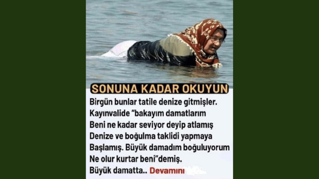 Büyük damat hemen denize atlayıp kurtarmış kaynanasını. Birlikte eve dönmüşler.