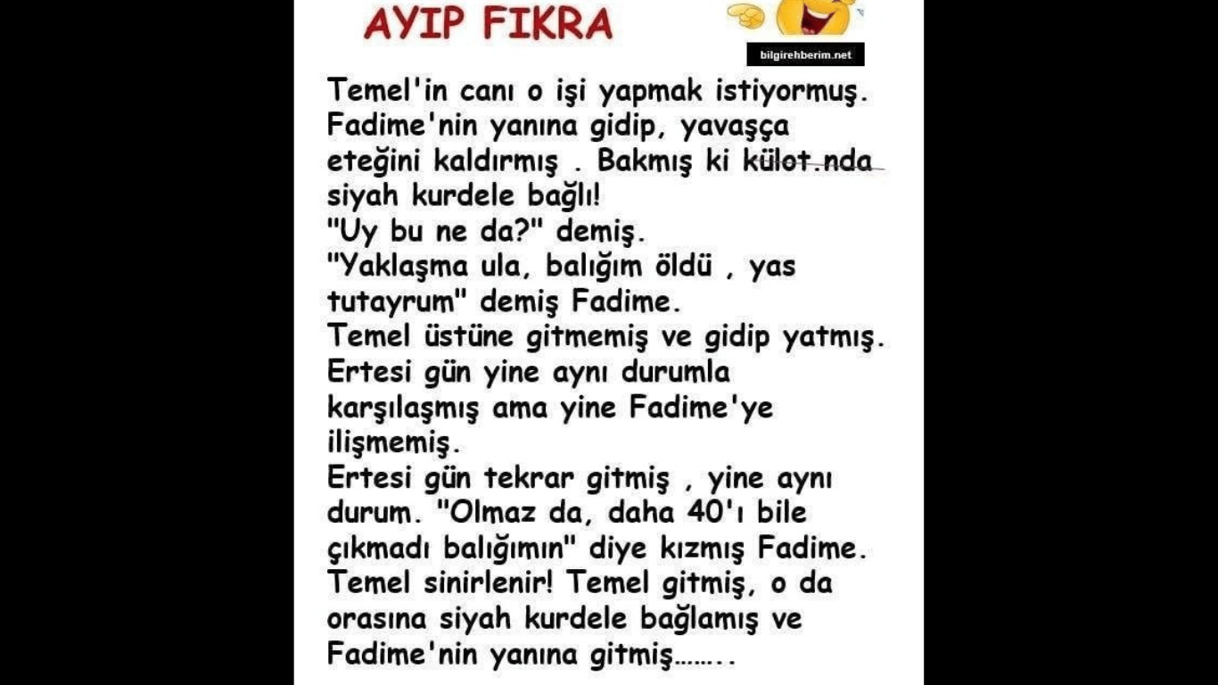 Bir gün Temel’in canı malum işi yapmak istiyormuş. Fadime’nin yanına gidip, yavaşca eteğini kaldırmış. Bakmış ki külot*nda kara kurdale bağlı! Bunu gören Temel: